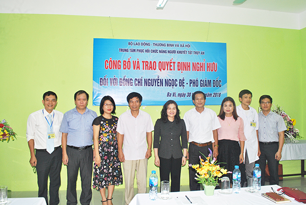 Thay mặt Ban cán sự đảng Bộ, Thứ trưởng Nguyễn Thị Hà đã trao quyết định nghỉ hưu cho đồng chí Nguyễn Ngọc Đệ, Phó Giám đốc Trung tâm. Trong phát biểu tại buổi lễ, Thứ trưởng Nguyễn Thị Hà đánh giá cao những kết quả hoạt động của Trung tâm PHCN người khuyết tật Thụy An, một mô hình tiêu biểu trong lĩnh vực này. Thứ trưởng chúc mừng đồng chí Nguyễn Ngọc Đệ, với ý chí, nghị lực và ý thức kỷ luật cao đã hoàn thành xuất sắc nhiệm vụ được Đảng, Nhà nước giao, góp phần không nhỏ vào thành quả của Trung tâm.